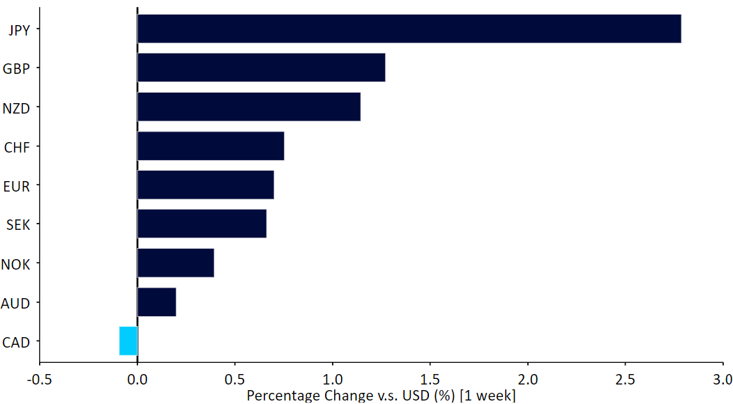 Figure 1: G10 FX Performance Tracker [vs. USD] (1 week)