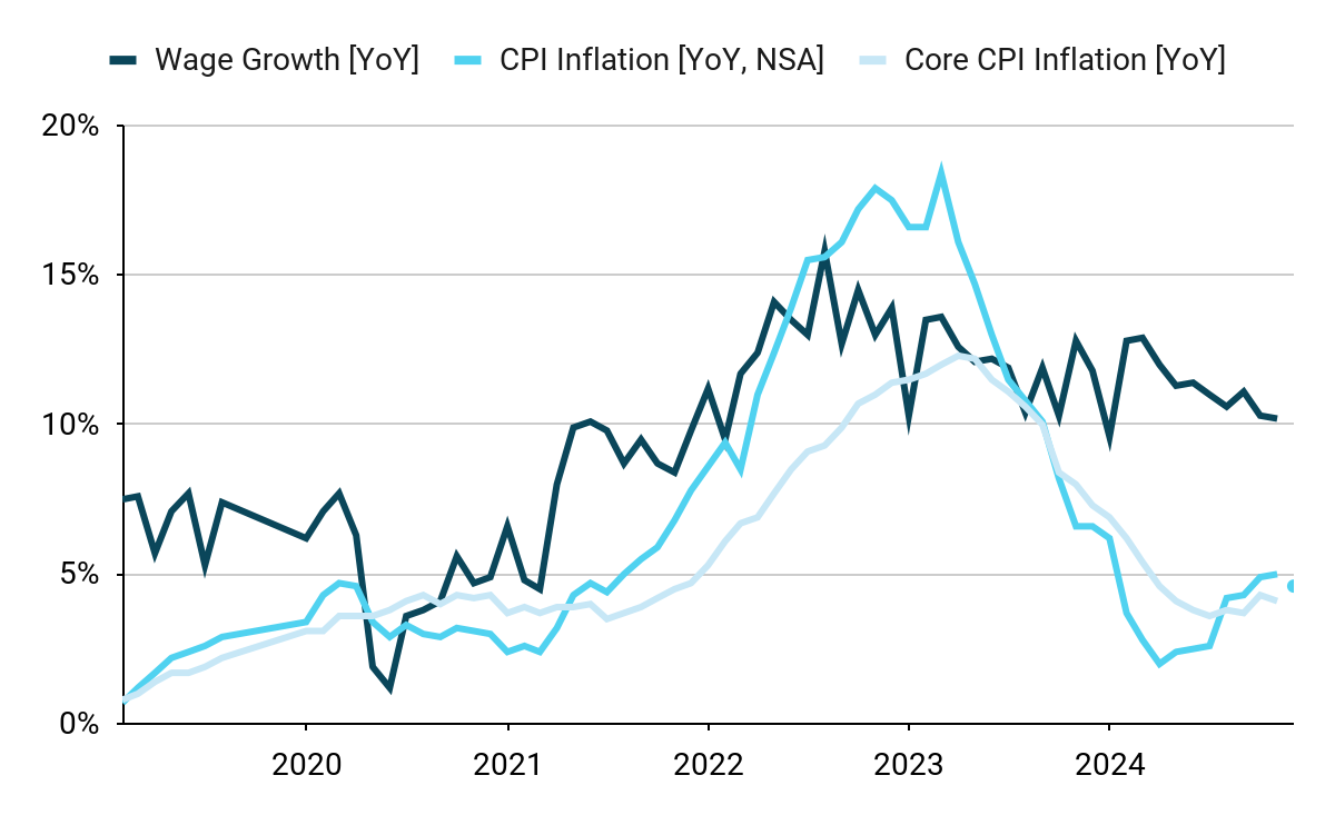 Figure 3: Poland Wage Growth & CPI Inflation (2019 – 2024)